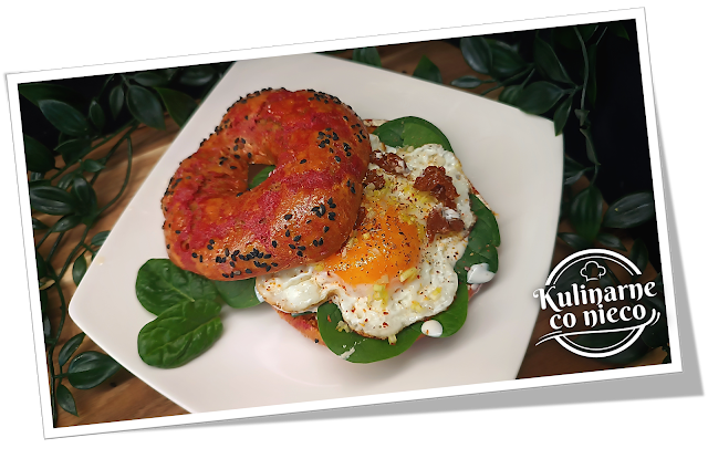 bardziej sycące śniadanie bajgle można podać z jajecznicą i dodatkiem szpinaku