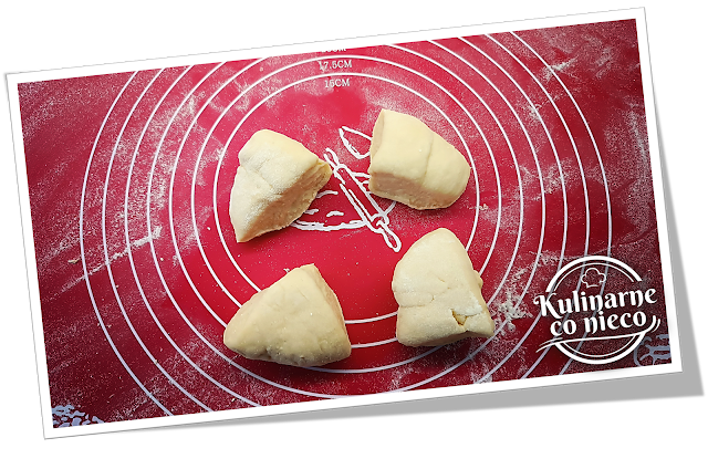 ciasto podzielić na 4 równe porcje i po kolei każdą z nich rozwałkować ekstremalnie