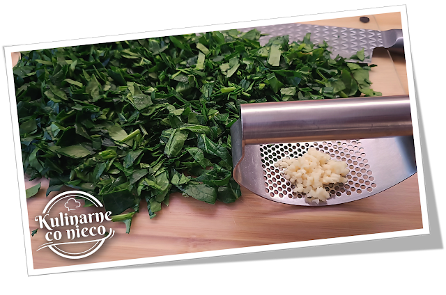 Szpinak dokładnie opłukać, osuszyć a