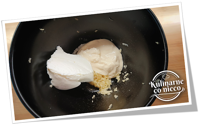 przecisnąć przez praskę. W miseczce połączyć skyr z majonezem, dodać czosnek