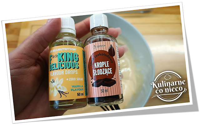 masy dodać kropelki waniliowe i czekoladowe lub inny słodzik a następnie całość