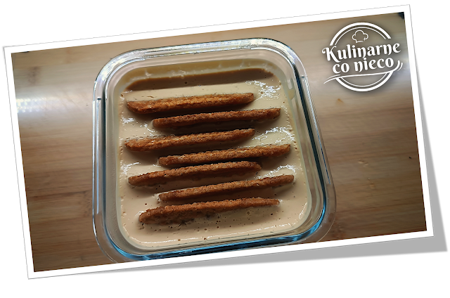 mascarpone, ani śmietanki, ani masła. Pionowo ułożone ciastka stopniowo miękną