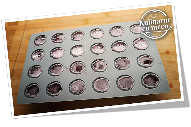 Gotową, jeszcze płynną masę przelać do przygotowanych foremek. Foremki delikatnie postukać o blat, aby usunąć ewentualne pęcherzyki powietrza. Całość wstawić do lodówki na minimum 4–6 godzin a najlepiej na całą noc, do całkowitego stężenia.
