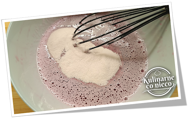 W kolejnym kroku przygotować galaretową bazę. Do garnka lub dzbanka wlać 250 ml gorącej wody o temperaturze około 70–80°C. Woda nie powinna wrzeć. Do gorącej wody wsypać 30 g proszku FIT JELLY i bardzo dokładnie wymieszać, najlepiej trzepaczką, aż proszek całkowicie się rozpuści a płyn stanie się jednolity i klarowny. Należy zwrócić uwagę, aby na dnie naczynia nie pozostały nierozpuszczone drobinki.