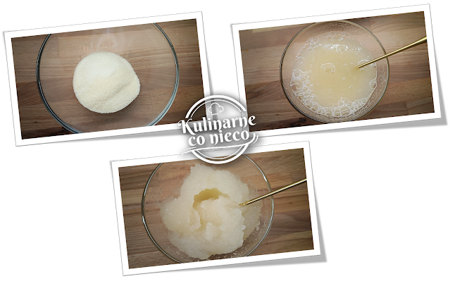 Przygotowanie żelków należy rozpocząć od przygotowania żelatyny. 30 g żelatyny wsypać do miseczki i zalać 150 ml zimnej wody, dbając o to, aby cała żelatyna została dokładnie zwilżona. Odstawić na 10 minut, aż żelatyna napęcznieje i wchłonie wodę, tworząc gęstą, jednolitą masę. Ten etap jest niezbędny, aby żelatyna równomiernie się rozpuściła i nie tworzyła grudek w dalszych etapach.
