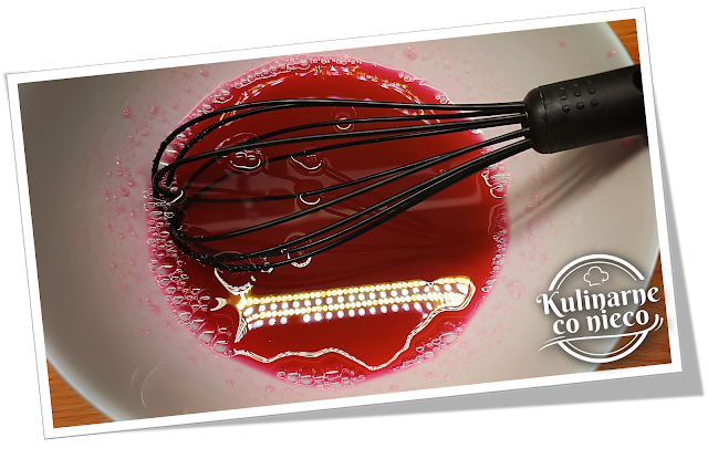 Do ciepłej bazy dodać napęczniałą żelatynę. Całość mieszać spokojnie, ale dokładnie, aż żelatyna całkowicie się rozpuści i połączy z galaretką. W razie potrzeby naczynie ustawić na bardzo małym ogniu lub w kąpieli wodnej i delikatnie podgrzać, cały czas mieszając, wyłącznie do momentu pełnego rozpuszczenia żelatyny. Masę należy podgrzewać ostrożnie i nie doprowadzać do wrzenia, ponieważ zbyt wysoka temperatura może osłabić właściwości żelujące.