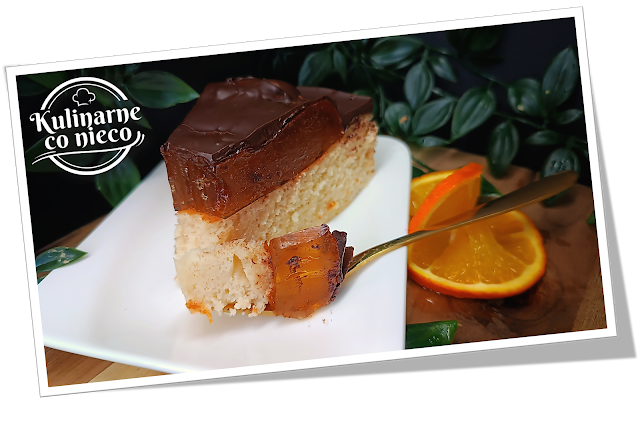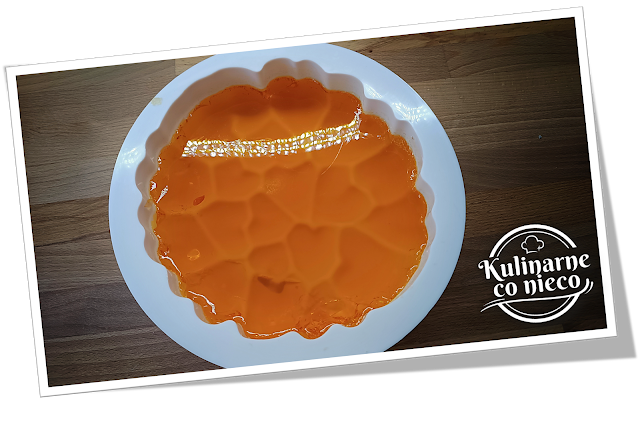 biszkopcie spoczywa gruba, sprężysta warstwa pomarańczowej galaretki, lekko
