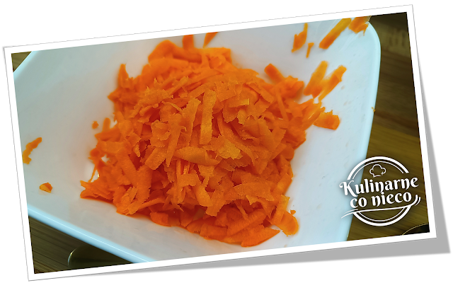 Następnie wsypać startą marchew. i podsmażać przez chwilę, aż marchewka lekko zmięknie.