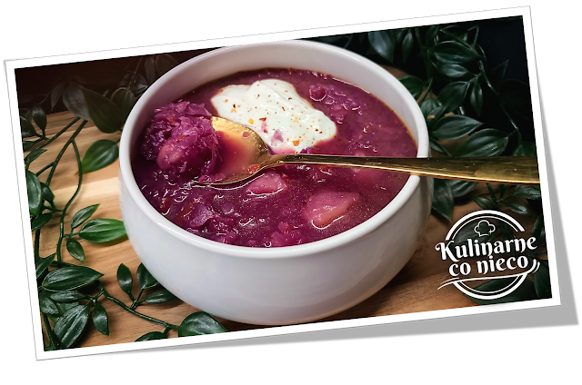 Są zupy, które mają po prostu smakować i są takie, które oprócz smaku mają jeszcze charakter. Ten kapuśniak zdecydowanie należy do tej drugiej grupy. Już sam kolor zdradza, że nie jest to zwyczajny talerz codzienności, lecz coś pomiędzy domowym obiadem a daniem, które chce się sfotografować zanim zdąży ostygnąć. Głęboki rubin czerwonej kapusty połączony z delikatnie kremowym kleksem skyru tworzy kontrast przypominający zimowe kuchnie Europy Środkowej, gdzie od setek lat kapusta była podstawą pożywienia i symbolem rozsądnego gotowania. Dawniej nie mówiono o kuchni fit, mówiono o kuchni oszczędnej i mądrej. Z jednego warzywa potrafiono przygotować sycące danie, które ogrzewało i karmiło jednocześnie. Ten kapuśniak jest współczesnym powrotem do tej filozofii, tylko ubranym w lżejszą, bardziej świadomą formę.