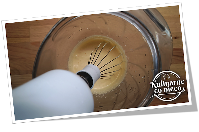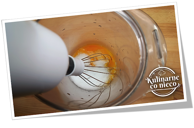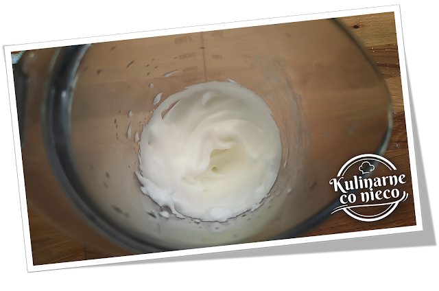 Białko umieścić w czystej, suchej misce i ubić na pianę. Piana ma być stabilna i sprężysta, ale nie musi być przesadnie “bezowa”.
