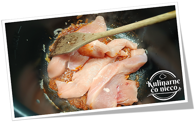 lub plastry przygotowane z całej piersi. Krótko obsmażyć mięso z obu stron