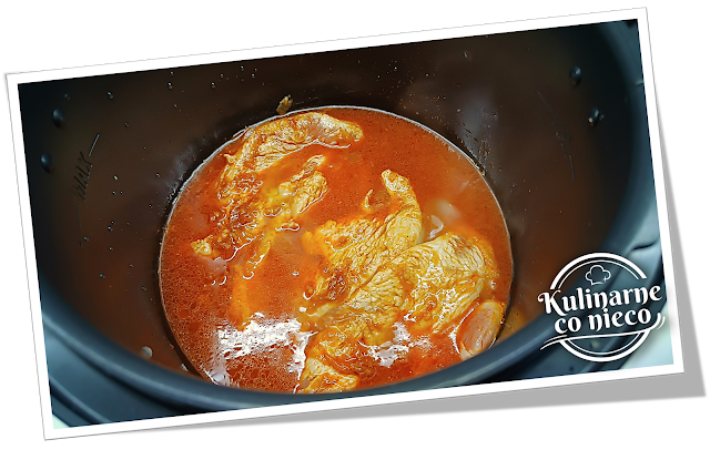 zalać bulionem, tak aby mięso było niemal całkowicie przykryte płynem.