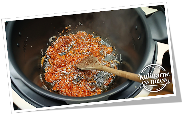 włączyć tryb ,,MOCNE DUSZENIE” i gotować bez pokrywki, regularnie mieszając, aż