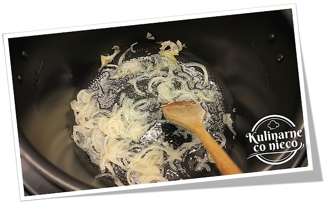 następnie dodać cebulę i smażyć przez około 2–3 minuty, aż stanie się miękka i