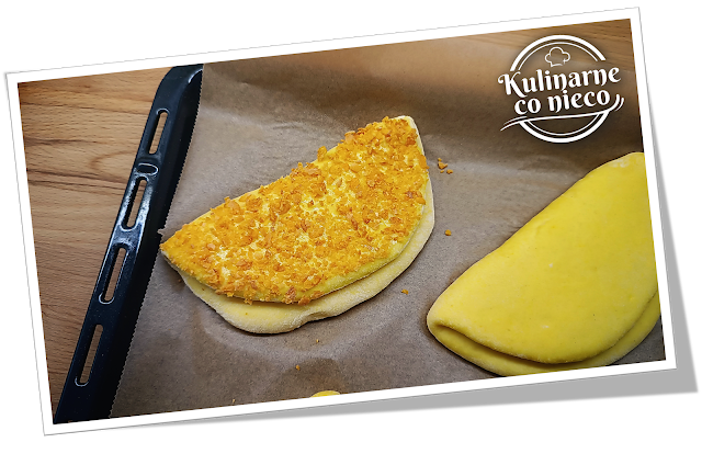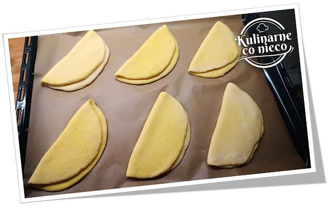 placek o grubości ok 8 mm i Ø15 cm. Placki złożyć na pół.