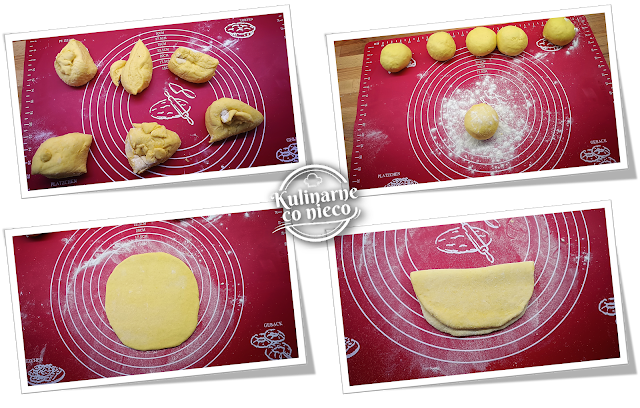każdej porcji uformować gładką kulkę, po czym każdą z nich rozwałkować na