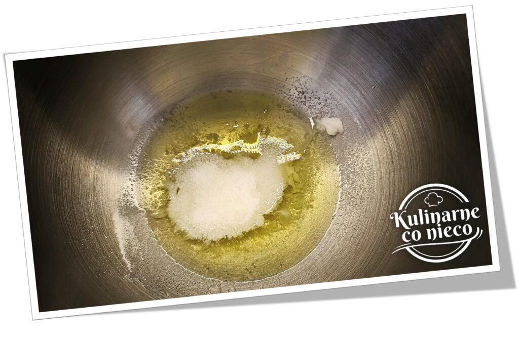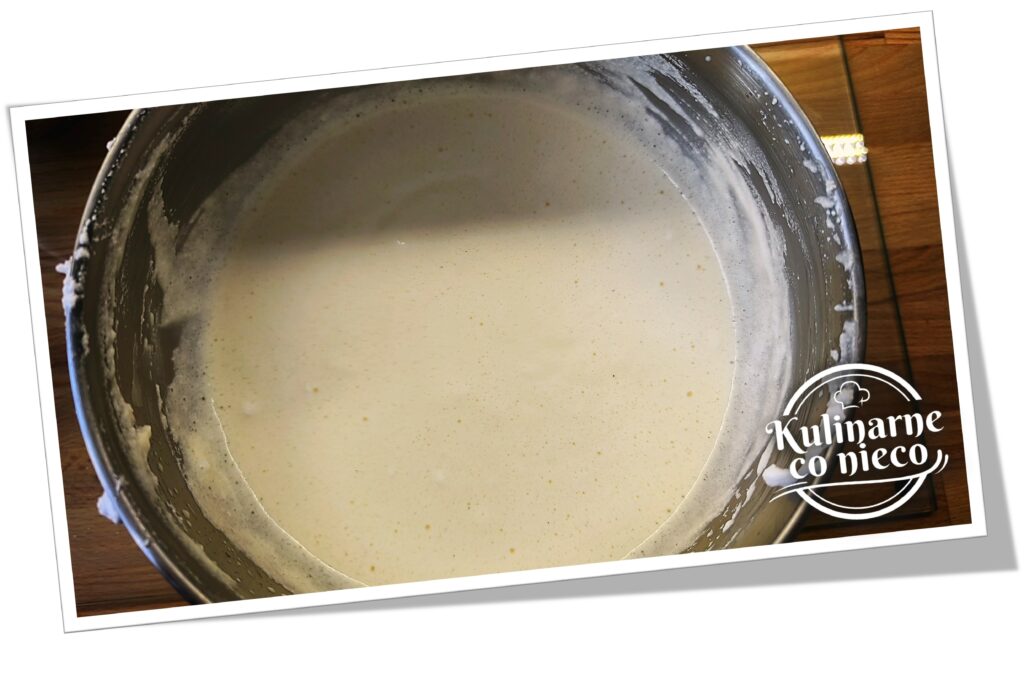 W osobnej, czystej i suchej misce ubić białka ze szczyptą soli i pozostałą połową porcji erytrytolu w pudrze. Gdy zaczną się pienić, dodać sok z cytryny i kontynuować ubijanie, aż powstanie sztywna, lekko błyszcząca piana. Piana powinna utrzymywać kształt.