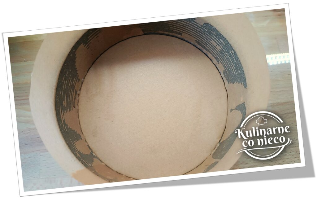 Tortownicę o średnicy ok 18 cm wyłożyć papierem do pieczenia. Najwygodniej wyłożyć nim zarówno dno, jak i boki formy – dzięki temu skyrnik po upieczeniu łatwo wyjąć i zachowa równy kształt.
