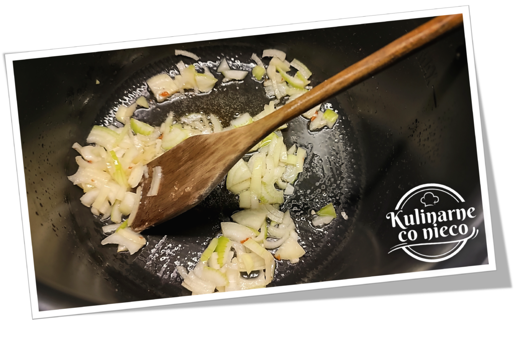 Na tym samym tłuszczu pozostałym w garnku po obsmażeniu pulpecików przygotować bazę warzywną zupy. Do garnka wsypać drobno posiekaną cebulę i smażyć ją chwilę, aż stanie się szklista i zacznie uwalniać swój aromat.