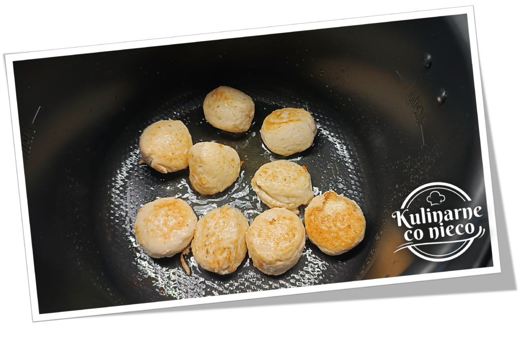 Uruchomić program ,,ŚREDNIE PODSMAŻANIE”. Do misy wlać oliwę. Gdy tłuszcz się rozgrzeje, delikatnie ułożyć pulpeciki w garnku w jednej warstwie. Obsmażać je bardzo krótko z każdej strony, tylko do momentu lekkiego ścięcia powierzchni mięsa. Nie chodzi tutaj o mocne rumienienie, lecz o szybkie zamknięcie struktury pulpecików, aby podczas późniejszego gotowania zachowały swój kształt i pozostały soczyste w środku. Gdy delikatnie się zetną i pojawi się lekko złocisty kolor, wyjąć je na talerz i odstawić na chwilę.