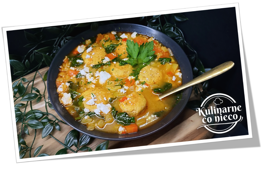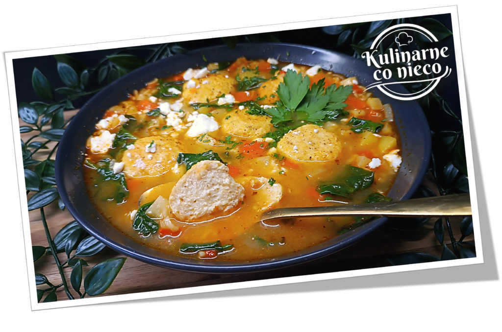 Już pierwsza łyżka pokazuje, jak przyjemne potrafi być połączenie prostych składników. Delikatny bulion warzywno-drobiowy ma naturalną słodycz marchewki i papryki a ziemniaki i ryż sprawiają, że zupa jest sycąca, ale nadal lekka. Soczyste pulpeciki z kurczaka są miękkie i aromatyczne a dzięki krótkiej obróbce zachowują naturalną delikatność mięsa. Całość ożywia sok z cytryny, który nadaje potrawie świeżości i przyjemnej lekkości. Liście szpinaku wprowadzają zielony akcent i subtelną roślinną nutę a niewielka ilość sera feta dodaje charakteru i śródziemnomorskiego klimatu.
