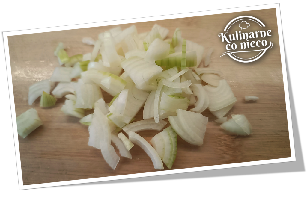 Cebulę obrać i pokroić w cienkie półplastry lub drobną kostkę.