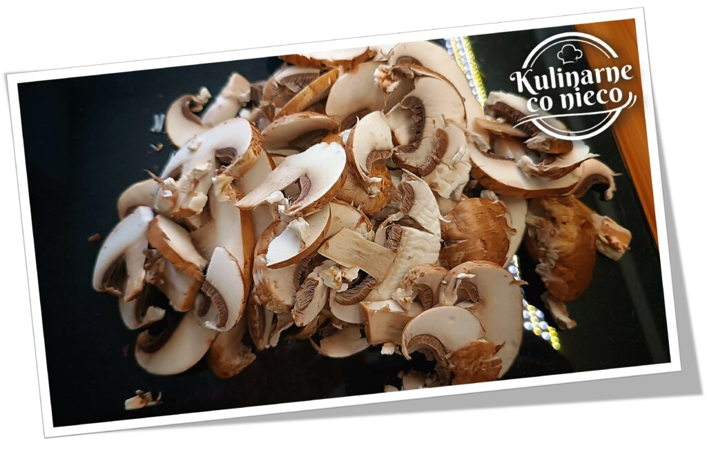 Pieczarki oczyścić i pokroić w plastry lub ćwiartki.