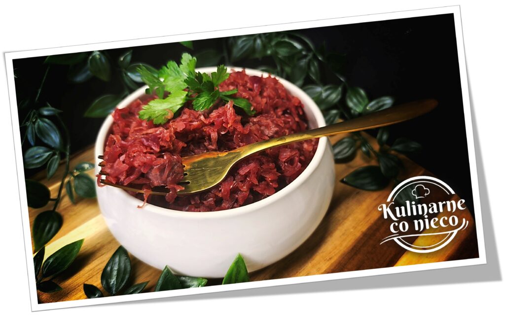 Bigos z czerwonej kiszonej kapusty to taka wersja klasyki, która zaskakuje już od pierwszego spojrzenia. Głęboki, rubinowo-purpurowy kolor przyciąga uwagę a aromat od razu daje sygnał, że to nie jest zwykłe danie „na szybko”, tylko coś, co ma charakter i historię. Choć tradycyjny bigos kojarzy się głównie z kapustą białą i cięższymi, tłustymi dodatkami, ta odsłona jest lżejsza, bardziej nowoczesna i zdecydowanie bliższa temu, czego dziś szuka wiele osób – smaku bez poczucia ciężkości.