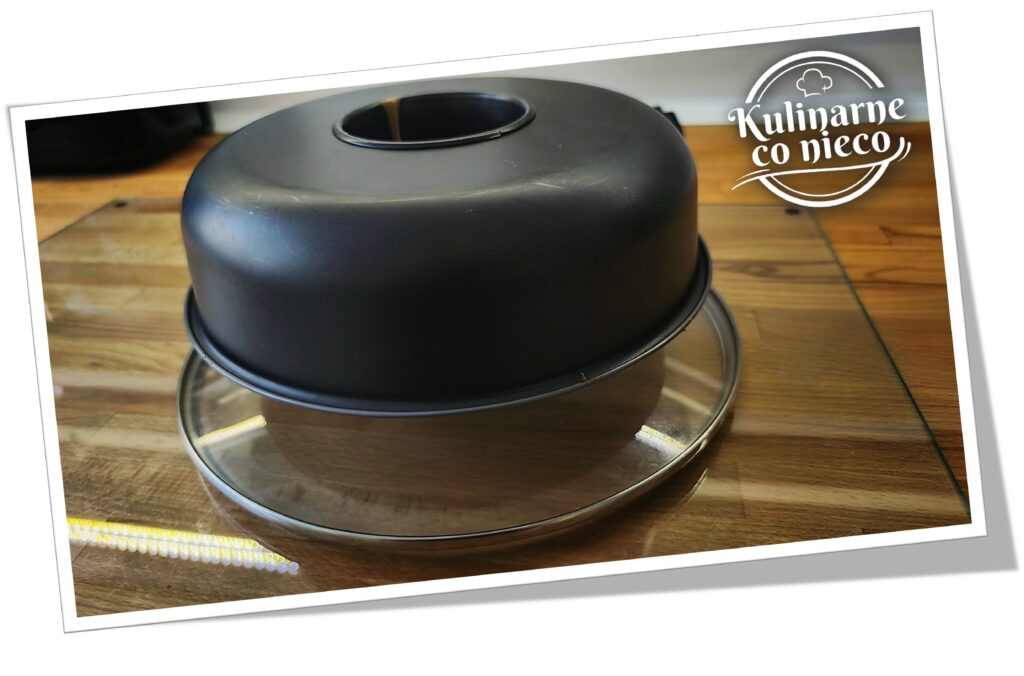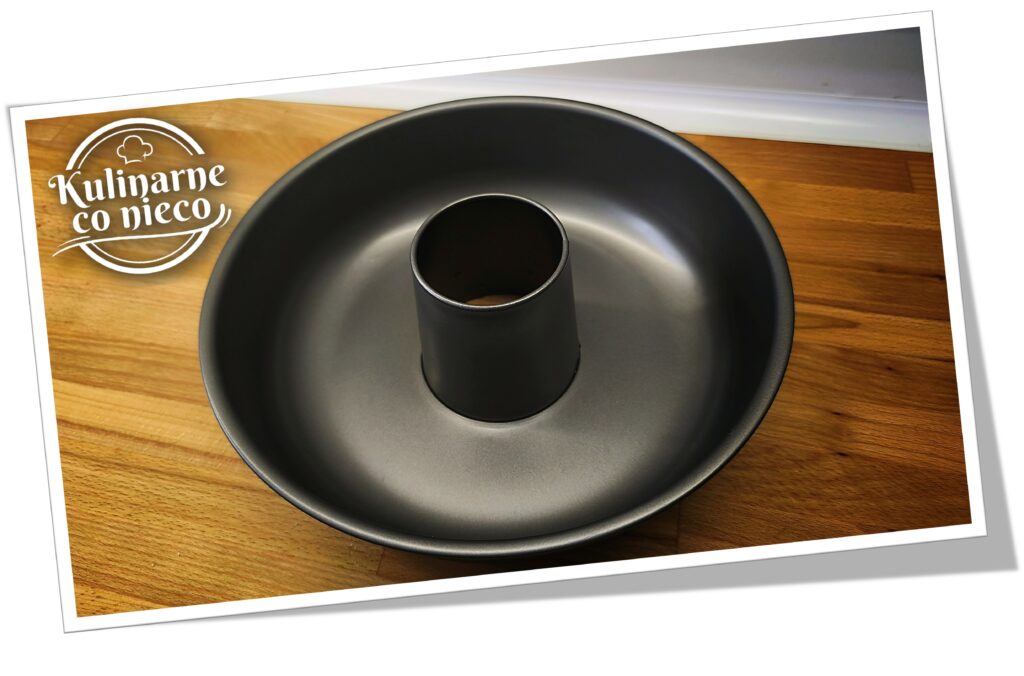 Formę przygotować wcześniej – powinna być metalowa (nie silikonowa), najlepiej z kominem, ponieważ taki kształt zapewnia równomierne pieczenie i stabilne wyrastanie ciasta. Formy nie smarować tłuszczem, ponieważ ciasto musi „wspinać się” po ściankach, aby uzyskać swoją charakterystyczną puszystość. Dla ułatwienia wyjmowania można wyłożyć samo dno papierem do pieczenia, pozostawiając boki i komin suche. Warto pamiętać, że średnica formy ma duże znaczenie – im węższa forma, tym ciasto wyrośnie wyższe, natomiast w szerszej formie będzie niższe, choć nadal lekkie i puszyste.