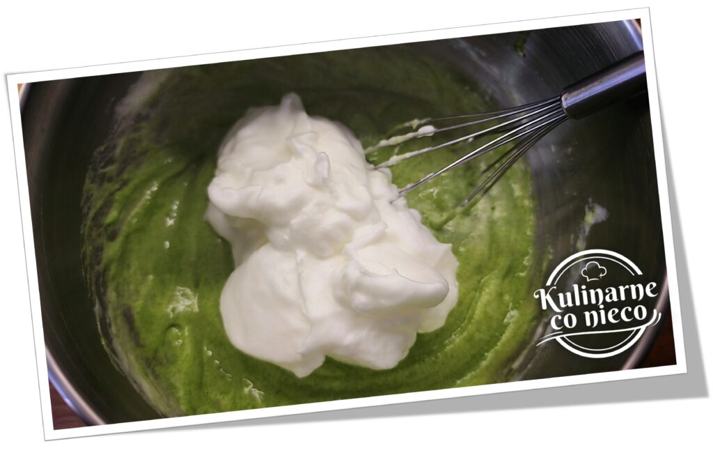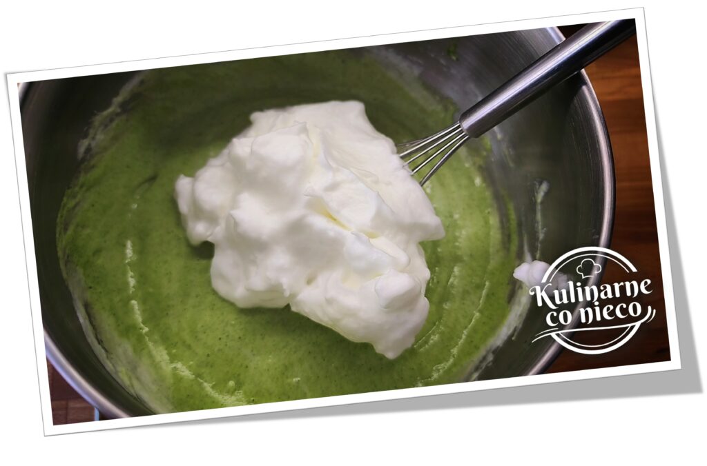 Do przygotowanej masy dodać ⅓ piany i dokładnie wymieszać, aby ją rozluźnić.