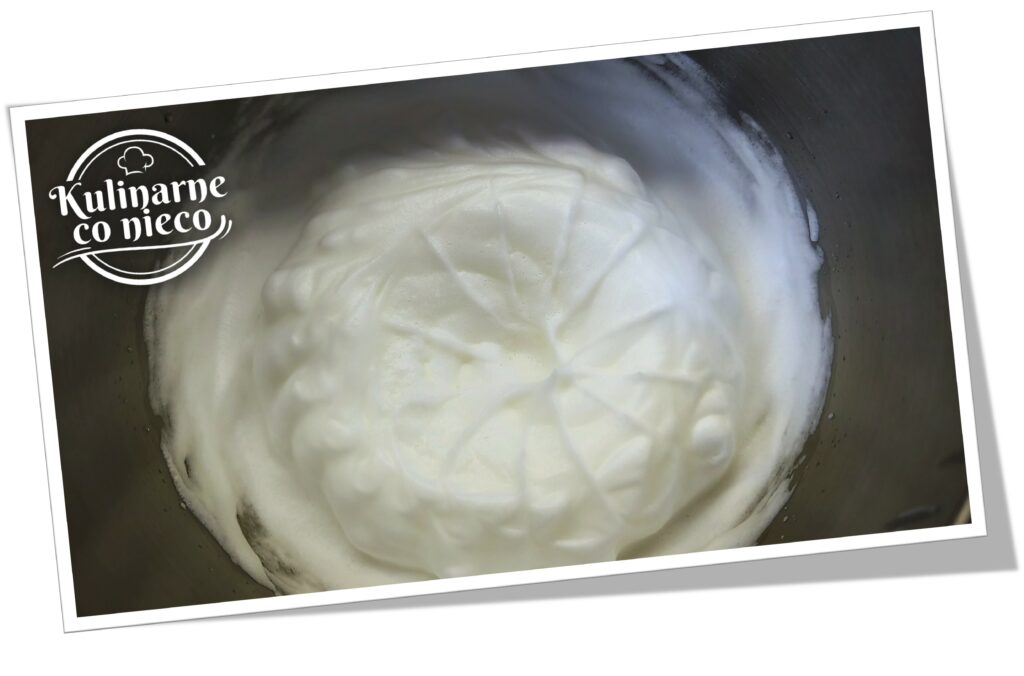 Białka umieścić w czystej, suchej misce, dodać szczyptę soli oraz sok z cytryny i ubić na sztywną, błyszczącą pianę. Piana powinna być stabilna, ale nadal elastyczna i gładka, nie sucha.