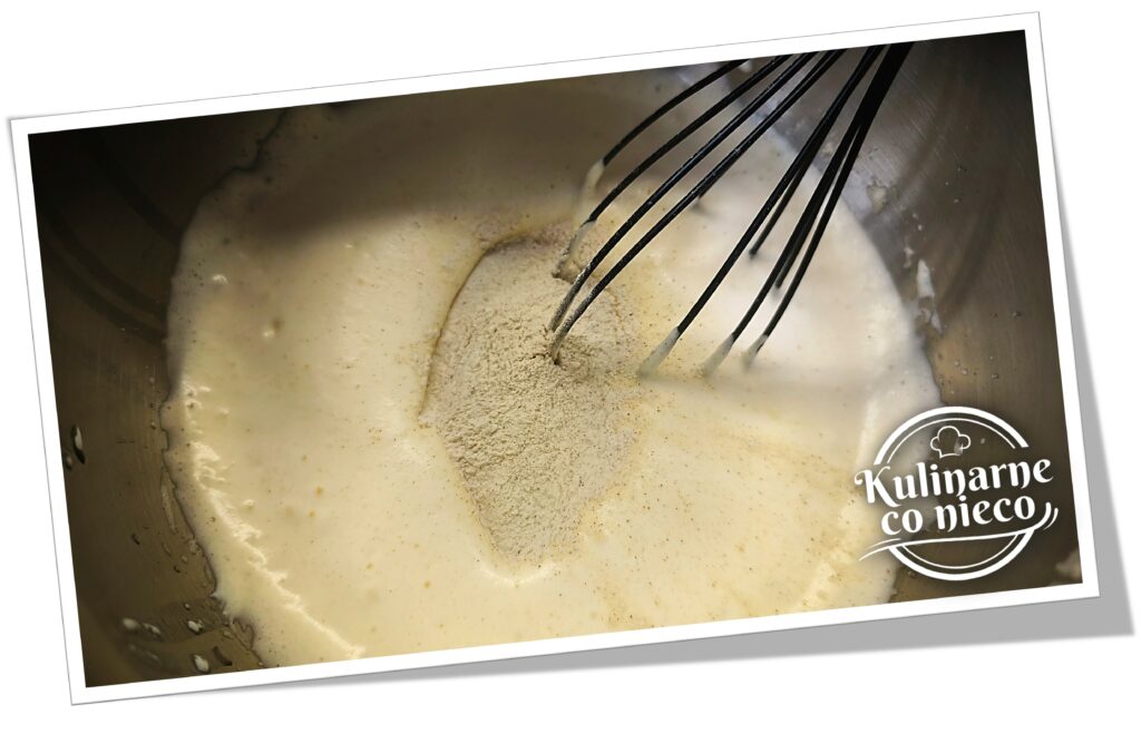 W osobnej misce połączyć wszystkie suche składniki, czyli mąkę, proszek do pieczenia, sodę oraz przyprawy a następnie przesiać je bezpośrednio do masy. Dzięki temu ciasto będzie bardziej jednolite i lekkie.