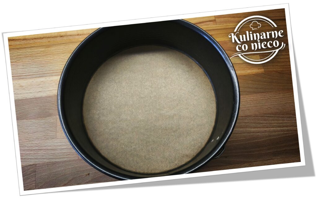 Tortownicę o Ø 20 cm wyłożyć papierem do pieczenia (sam spód).