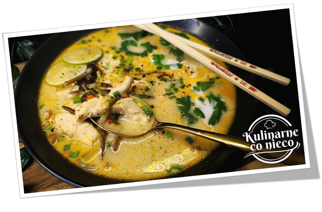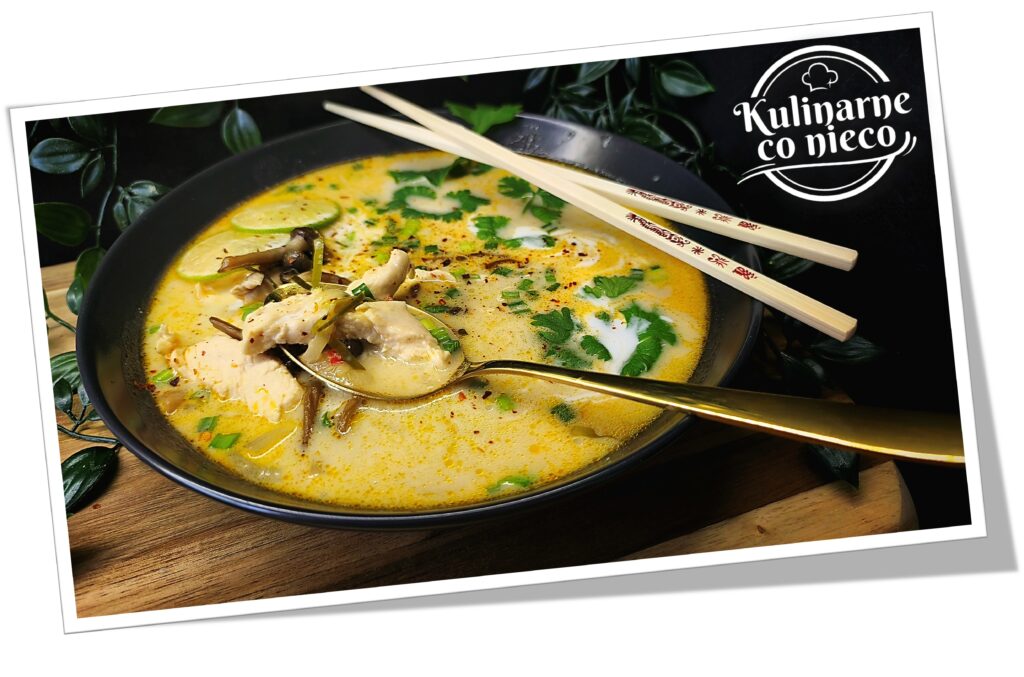Tom Kha Gai to jedna z tych zup, które potrafią przenieść myślami prosto do Tajlandii już od pierwszej łyżki. Kremowa, ale jednocześnie lekka, otulająca kokosową delikatnością i przełamana świeżą nutą limonki, tworzy idealną równowagę między sytością a świeżością. Aromat trawy cytrynowej, imbiru i czosnku unosi się nad miską jeszcze zanim spróbuje się pierwszego kęsa a soczyste kawałki kurczaka i dodatki zanurzone w aksamitnym bulionie sprawiają, że trudno się oderwać. To danie nie jest ciężkie ani przytłaczające, raczej przyjemnie rozgrzewa i daje uczucie komfortu, ale bez efektu „przejedzenia”. Właśnie dlatego tak łatwo wpisać je w codzienne, rozsądne gotowanie, które ma być nie tylko smaczne, ale i wspierające dla organizmu.