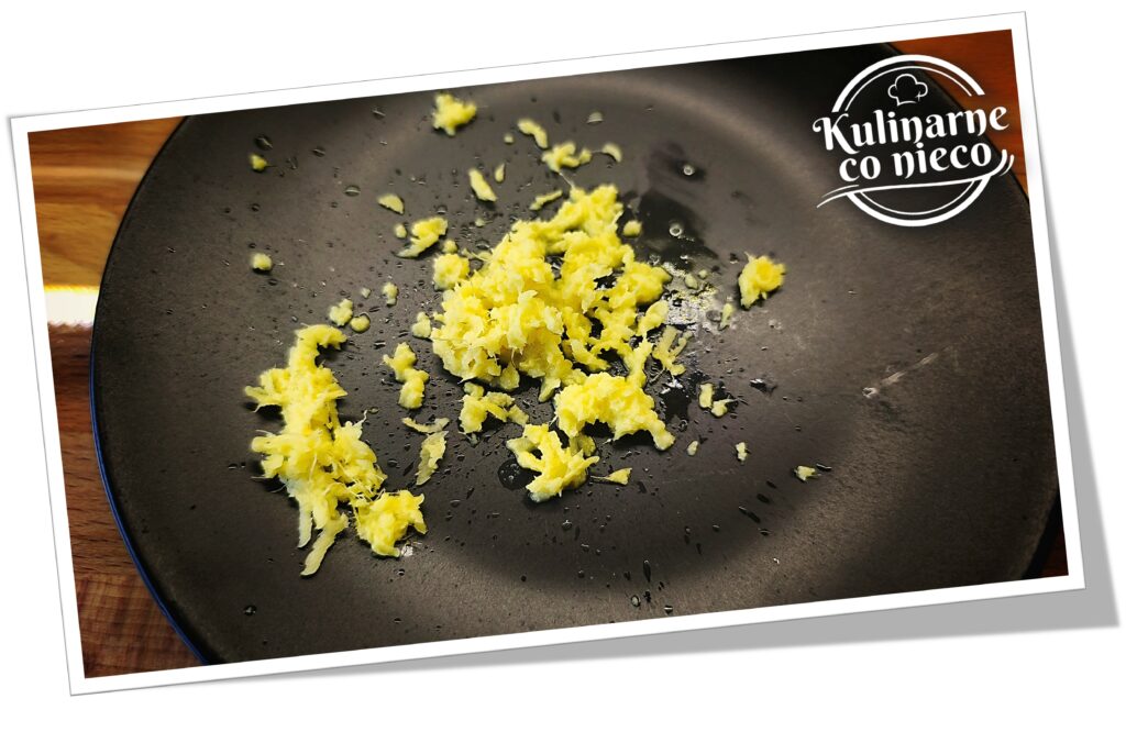 Świeży imbir obrać cienko ze skórki i zetrzeć na drobnych oczkach tarki.