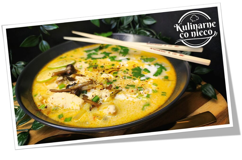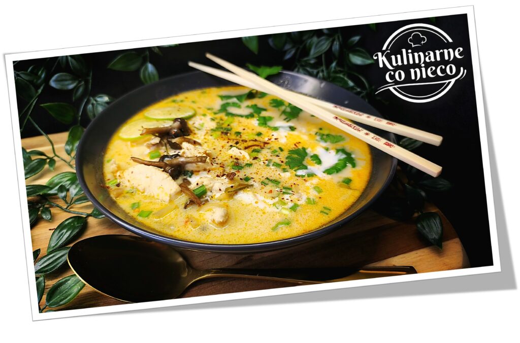 Przy hipercholesterolemii kluczowe znaczenie ma sposób przygotowania i proporcje składników. Chude mięso z kurczaka dostarcza wartościowego białka bez nadmiaru tłuszczu a umiarkowana ilość mleczka kokosowego pozwala cieszyć się smakiem bez przesady kalorycznej. Brak smażenia na głębokim tłuszczu i oparcie dania na bulionie sprawiają, że całość jest znacznie lżejsza i dzięki temu nie obciąża tak jak ciężkie, tłuste dania a po jedzeniu nie ma uczucia ,,zamulenia”.