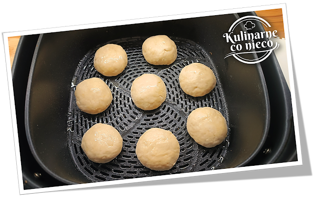 pączki ułożyć w lekko natłuszczonym koszu AirFryera zachowując niewielkie odstępy. Wierzch również bardzo